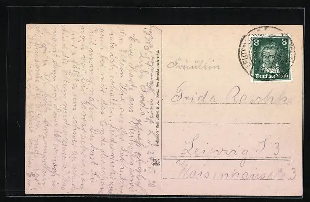 alte Ansichtskarte, gelaufen 1928, Eckknick re. unten, Oberflächenschaden, guter Zustand