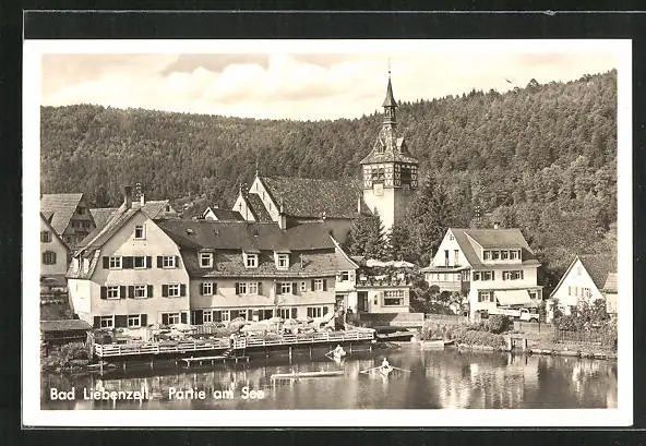 AK Bad Liebenzell, Partie am See, Terrasse des Gasthaus Löwen am See
