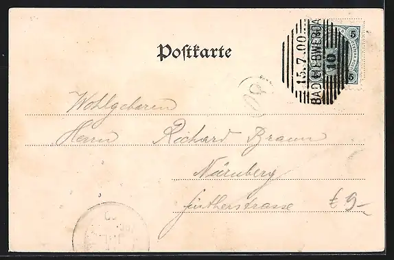 alte Ansichtskarte, gelaufen 1900, Stempelspur, guter Zustand
