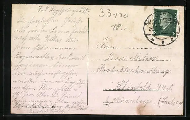 alte Ansichtskarte, gelaufen 1930, guter Zustand