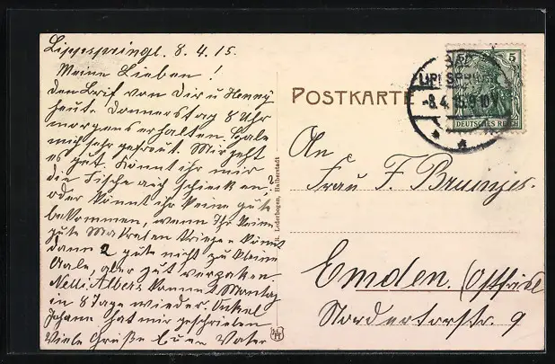 alte Ansichtskarte, gelaufen 1915, Eckknick li. unten, guter Zustand