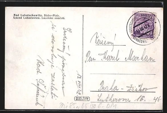 AK Bad Luhatschowitz, Blick auf den Bäder-Platz