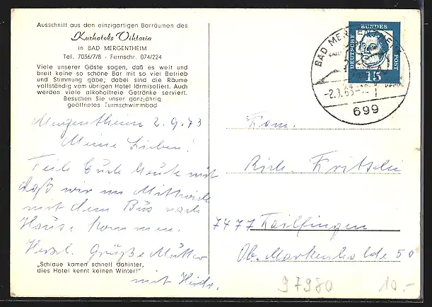 AK Bad Mergentheim, Kurhotel Viktoria, Bar