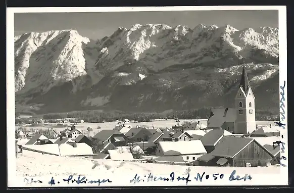 AK Bad Mitterndorf, Gesamtansicht mit Grimming im Winter