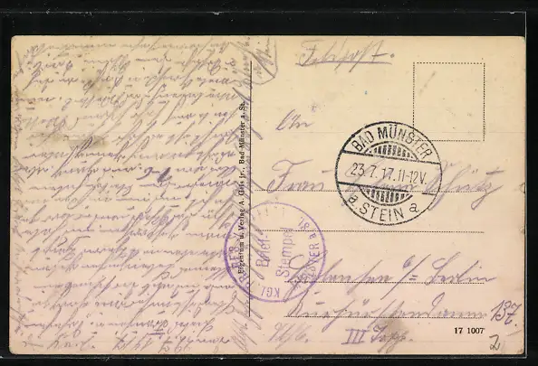 gelaufen 1917, Eckknick oben rechts und unten links, guter Zustand