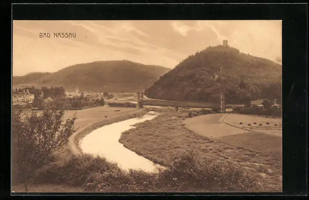AK Bad Nassau, Blick auf die Brücke und Stadt