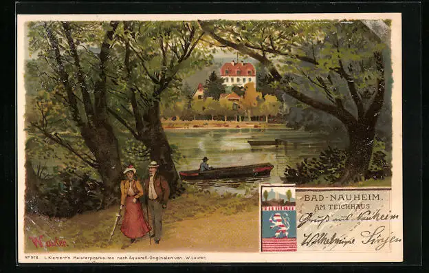 AK Bad Nauheim, Am Teichhaus mit Ruderpartie