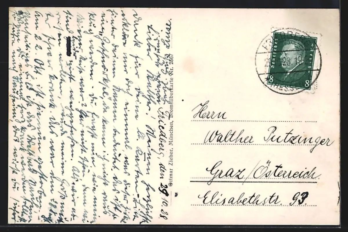 alte Ansichtskarte, gelaufen 1928, guter Zustand