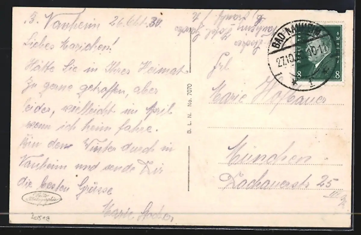 alte Ansichtskarte, gelaufen 1930, Kanten bestoßen, minimaler Einriss li. oben, guter Zustand