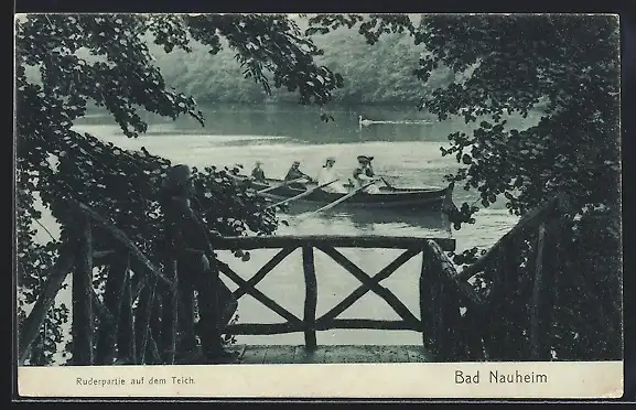 AK Bad Nauheim, Ruderpartie auf dem Teich