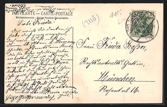 alte Ansichtskarte, gelaufen 1906, Eckknicke re., guter Zustand