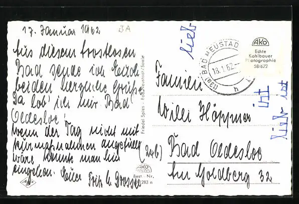 alte Ansichtskarte, gelaufen 1962, Briefmarke entfernt, guter Zustand