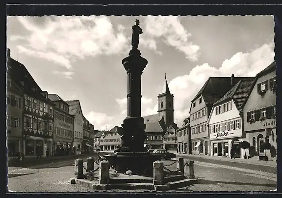 AK Bad Neustadt a. d. Saale, Partie am Marktplatz mit Springbrunnen