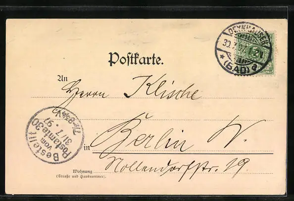 alte Ansichtskarte, gelaufen 1897, guter Zustand