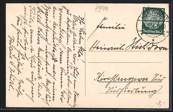 alte Ansichtskarte, gelaufen 1934, Abriebspur oben li., Stempelspur, guter Zustand