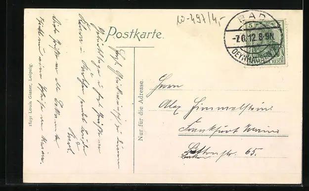 alte Ansichtskarte, gelaufen 1912, Stempelspur, guter Zustand