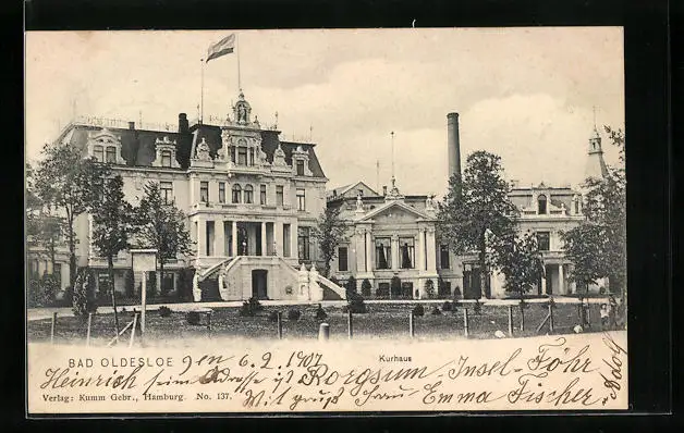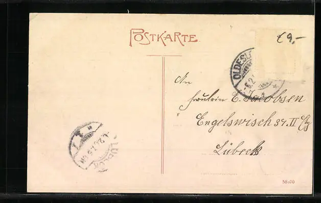 alte Ansichtskarte, gelaufen 1907, Briefmarke entfernt, guter Zustand