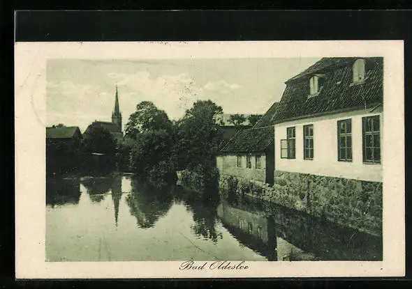 AK Bad Oldesloe, Strassenpartie im Ort, Kirchturm