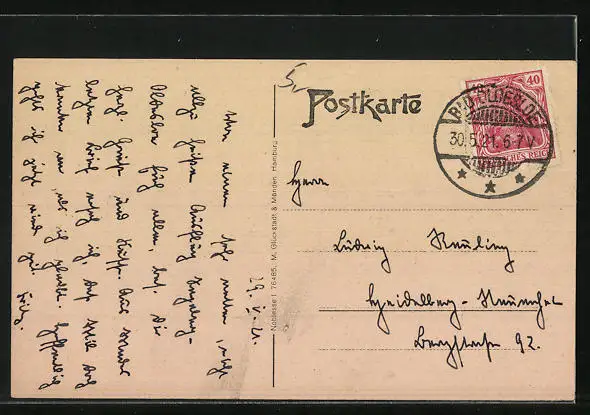 alte Ansichtskarte, gelaufen 1921, Eckknicke li. oben und re. unten, guter Zustand