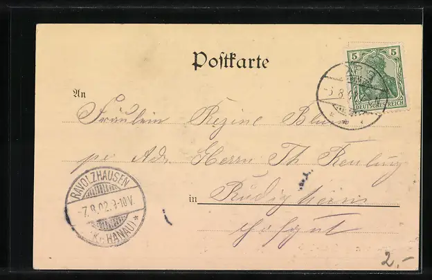 gelaufen 1902, Eckknick li. unten, guter Zustand