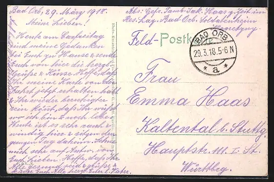 alte Ansichtskarte, gelaufen 1918, Bugspur oben mittig, guter Zustand