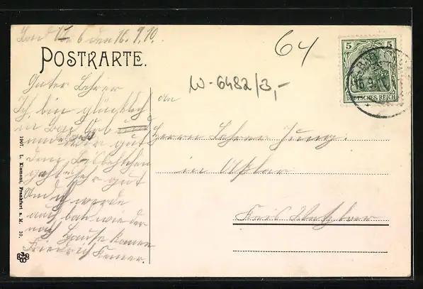 alte Ansichtskarte, gelaufen 1910, guter Zustand