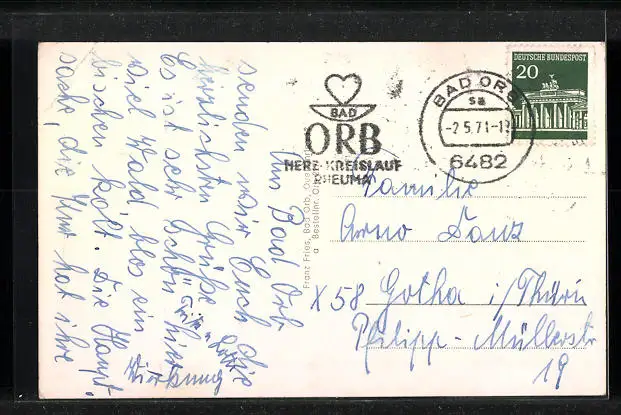 gelaufen 1971, Eckknick re. oben, guter Zustand