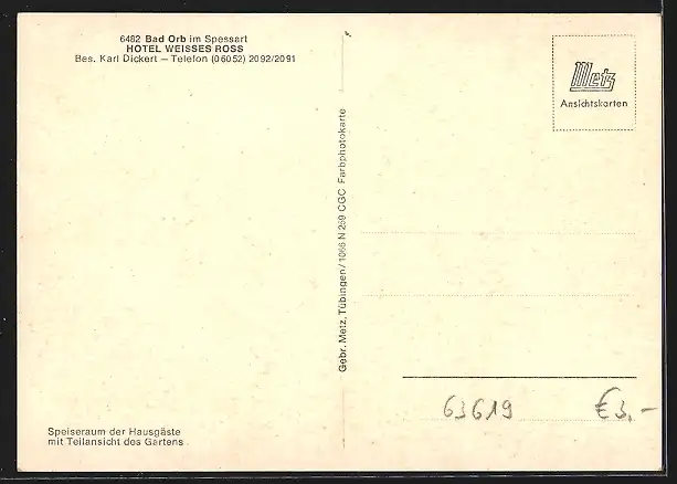 AK Bad Orb im Spessart, Hotel Weisses Ross, Bes. Karl Dickert