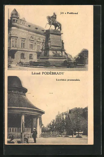 AK Bad Podiebrad / Podebrady, Jiri z Podebrad, Lázenská promenáda
