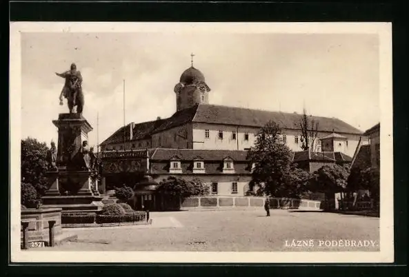 AK Bad Podiebrad / Podebrady, Ortspartie mit Denkmal