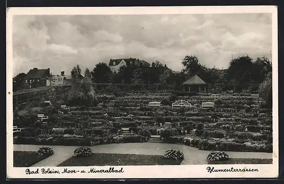 AK Bad Polzin, Blumenterrassen mit Sitzbänken