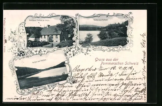 AK Bad Polzin, Forst- und Gasthaus Fünfsee mit Seeblick