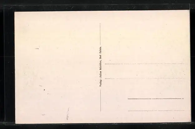 Personenbezogene Daten auf der Rückseite der Karte wurden durch blauen Textmarker unkenntlich gemacht. Die blauen Stellen sind auf die Vorderseite durchgeweicht und wirken sich negativ auf das Postkartenfoto aus