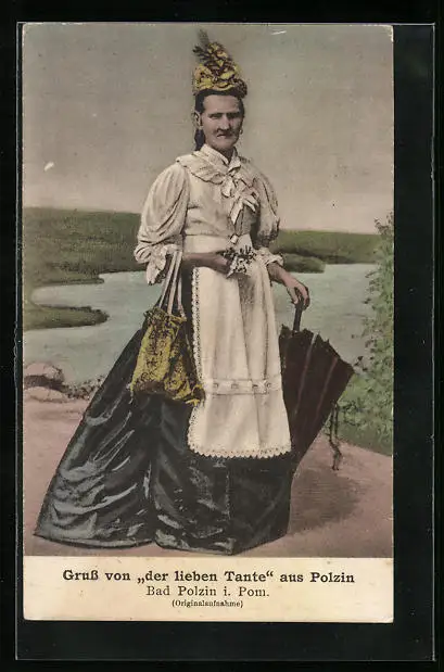 AK Bad Polzin, Liebe Tante im Ganzkörperportrait