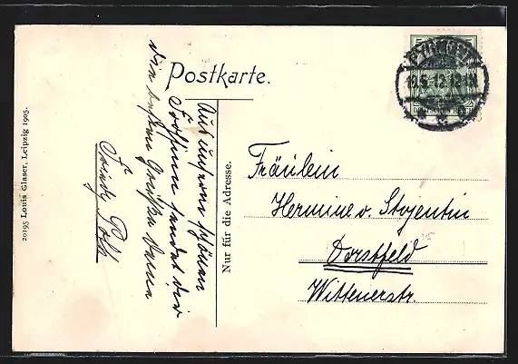 alte Ansichtskarte, gelaufen 1912, Eckknick oben re., Stempelspur, guter Zustand