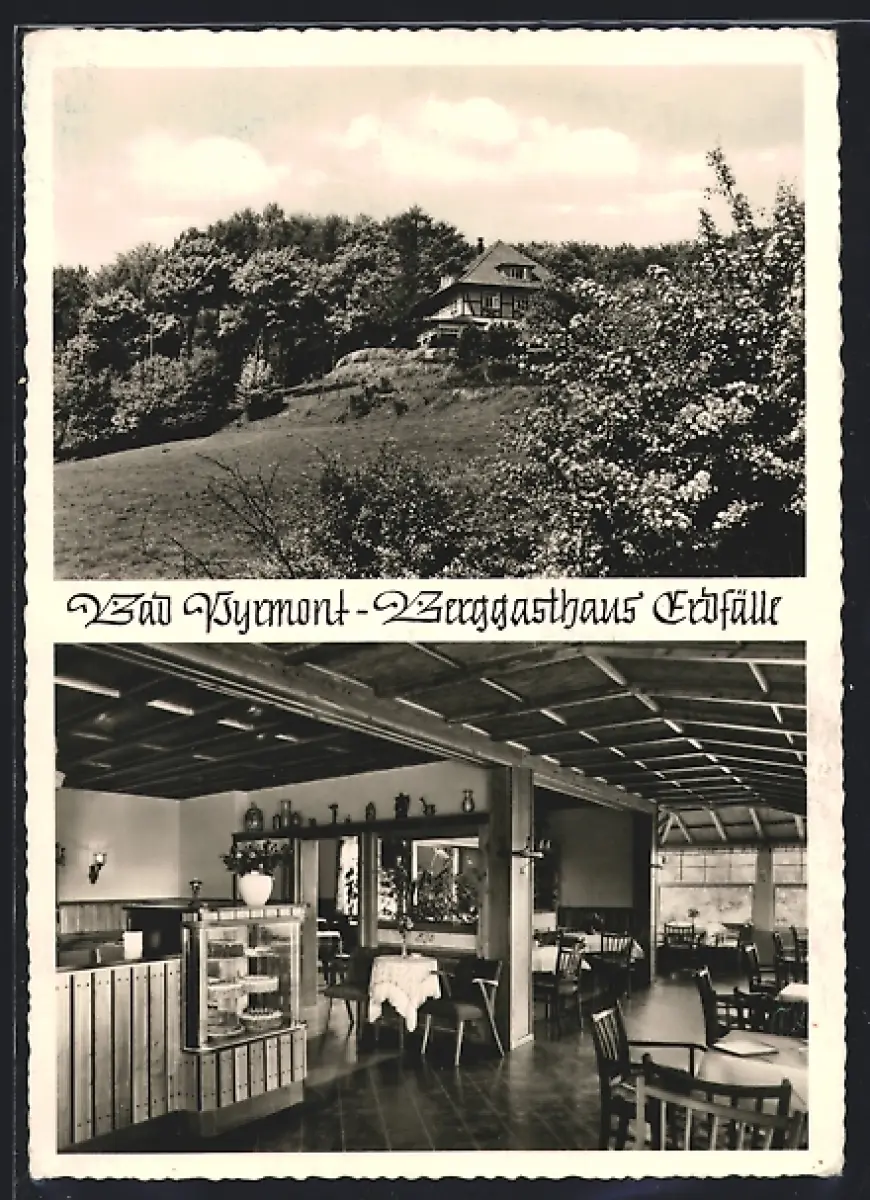 AK Bad Pyrmont, Berggasthaus Erdfälle mit Innenansicht