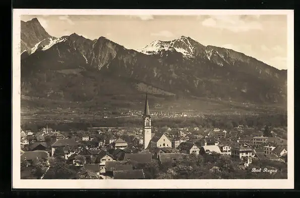 AK Bad Ragaz, Ortsansicht gegen Alpen