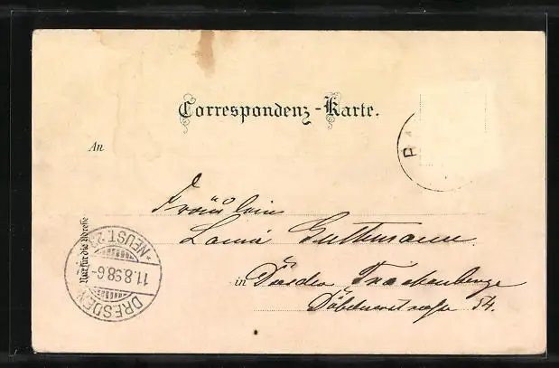 alte Ansichtskarte, gelaufen, Briefmarke entfernt, guter Zustand