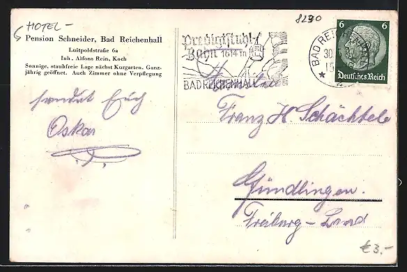 AK Bad Reichenhall, Hotel Fremdenheim Schneider