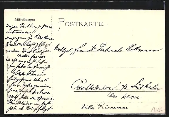 Personenbezogene Daten auf der Rückseite der Karte wurden durch blauen Textmarker unkenntlich gemacht. Die blauen Stellen sind auf die Vorderseite durchgeweicht und wirken sich negativ auf das Postkartenfoto aus