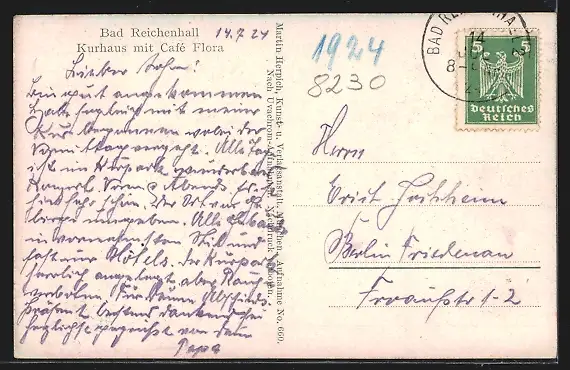 alte Ansichtskarte, gelaufen 1924, guter Zustand