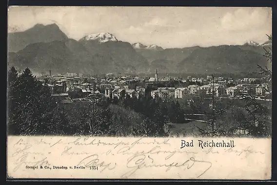 AK Bad Reichenhall, Ortsansicht mit Bergpanorama