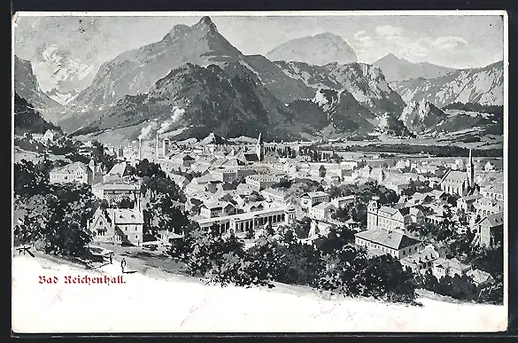 AK Bad Reichenhall, Ortsansicht mit Gebirgspanorama