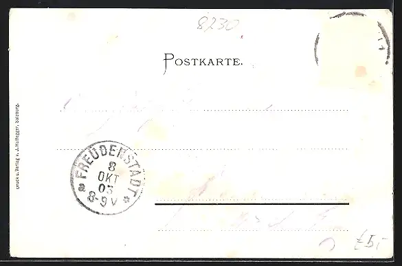 alte Ansichtskarte, gelaufen 1903, Briefmarke entfernt, rückseitig Oberflächenschaden, guter Zustand