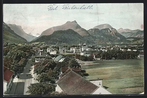 AK Bad Reichenhall, Ortsansicht vor Bergpanorama
