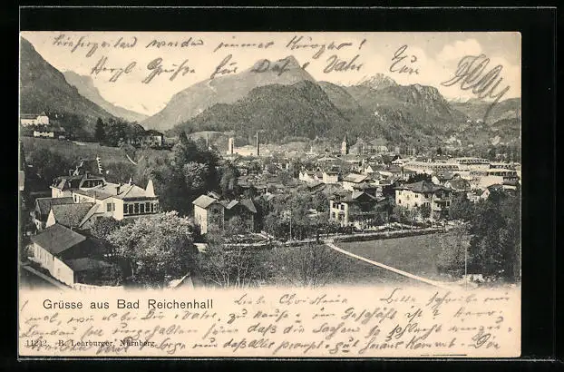 AK Bad Reichenhall, Teilansicht mit Bergkette
