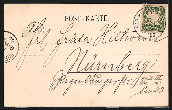 alte Ansichtskarte, gelaufen 1900, guter Zustand