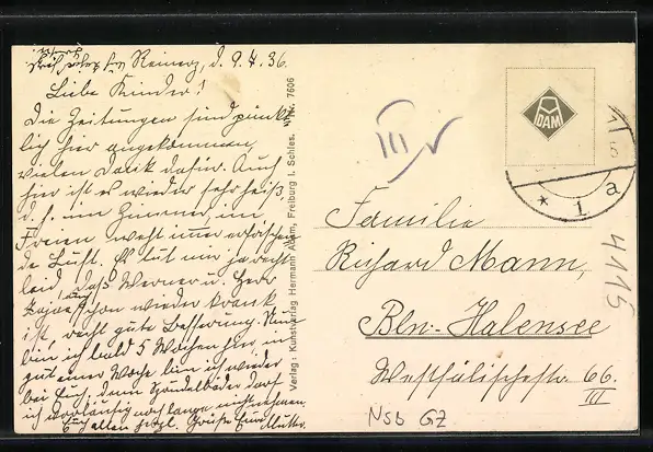 alte Ansichtskarte, gelaufen 1936, Briefmarke entfernt, Eckknick unten li., guter Zustand