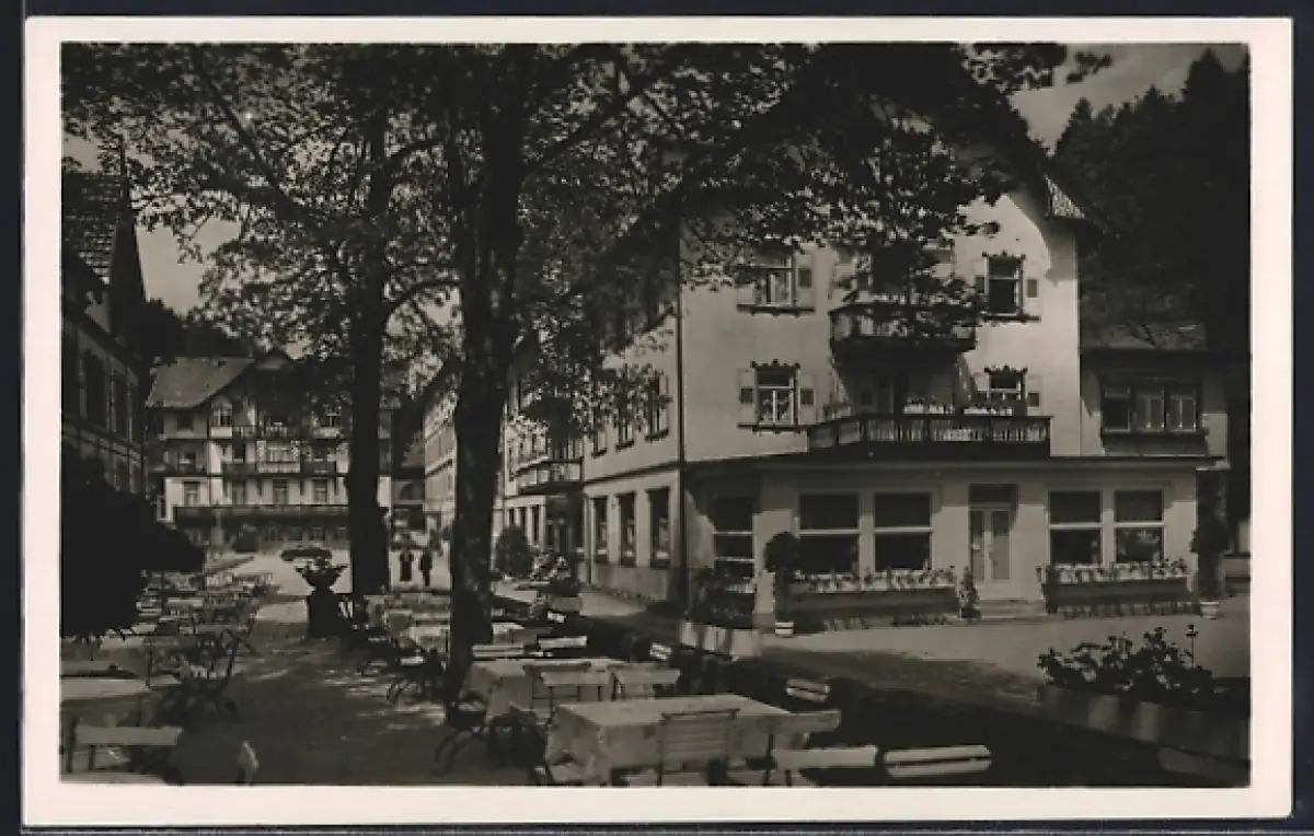 AK Bad Rippoldsau, Gasthaus mit Strassentischen und Umgebung
