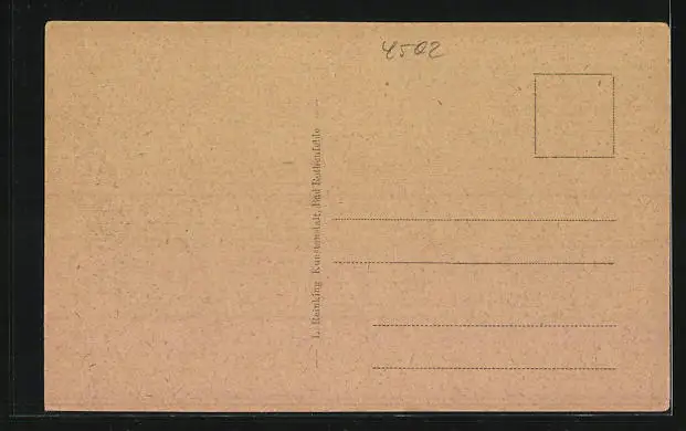 Personenbezogene Daten auf der Rückseite der Karte wurden durch blauen Textmarker unkenntlich gemacht. Die blauen Stellen sind auf die Vorderseite durchgeweicht und wirken sich negativ auf das Postkartenfoto aus